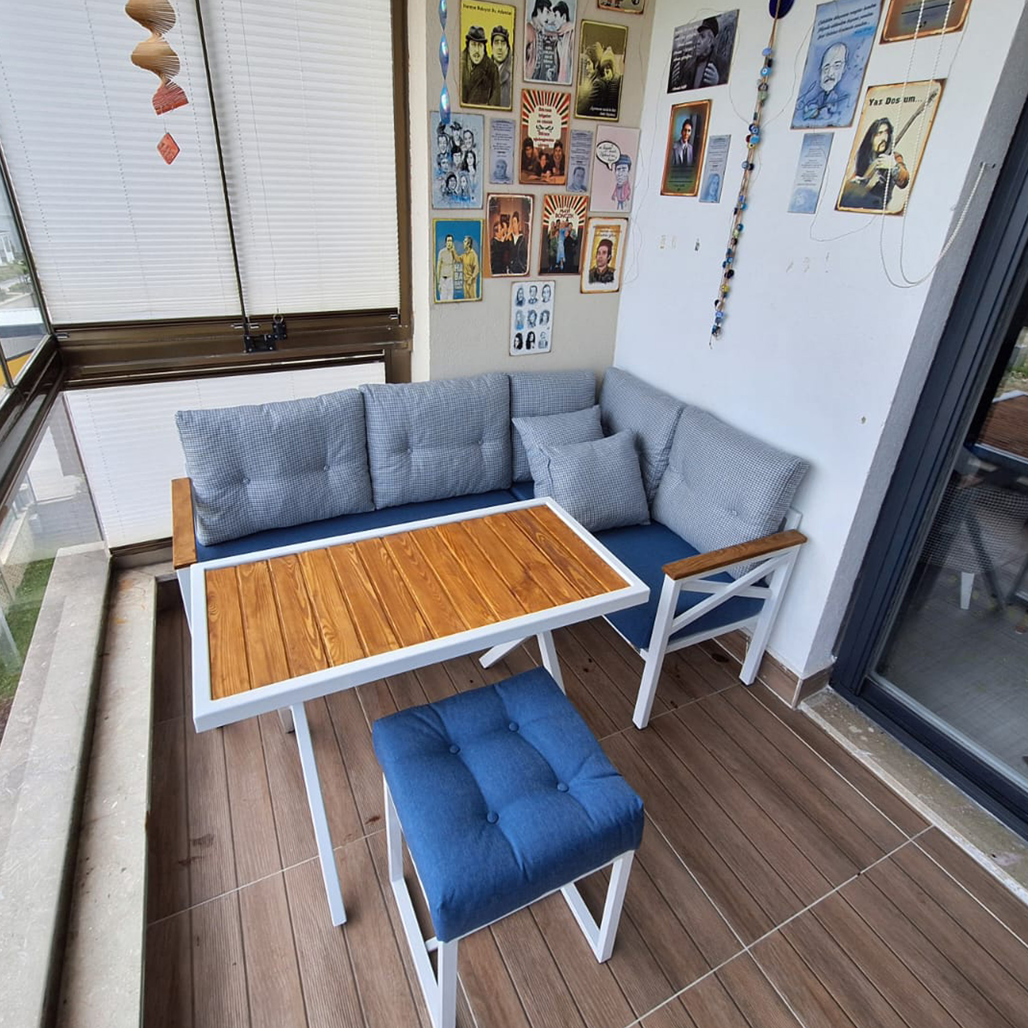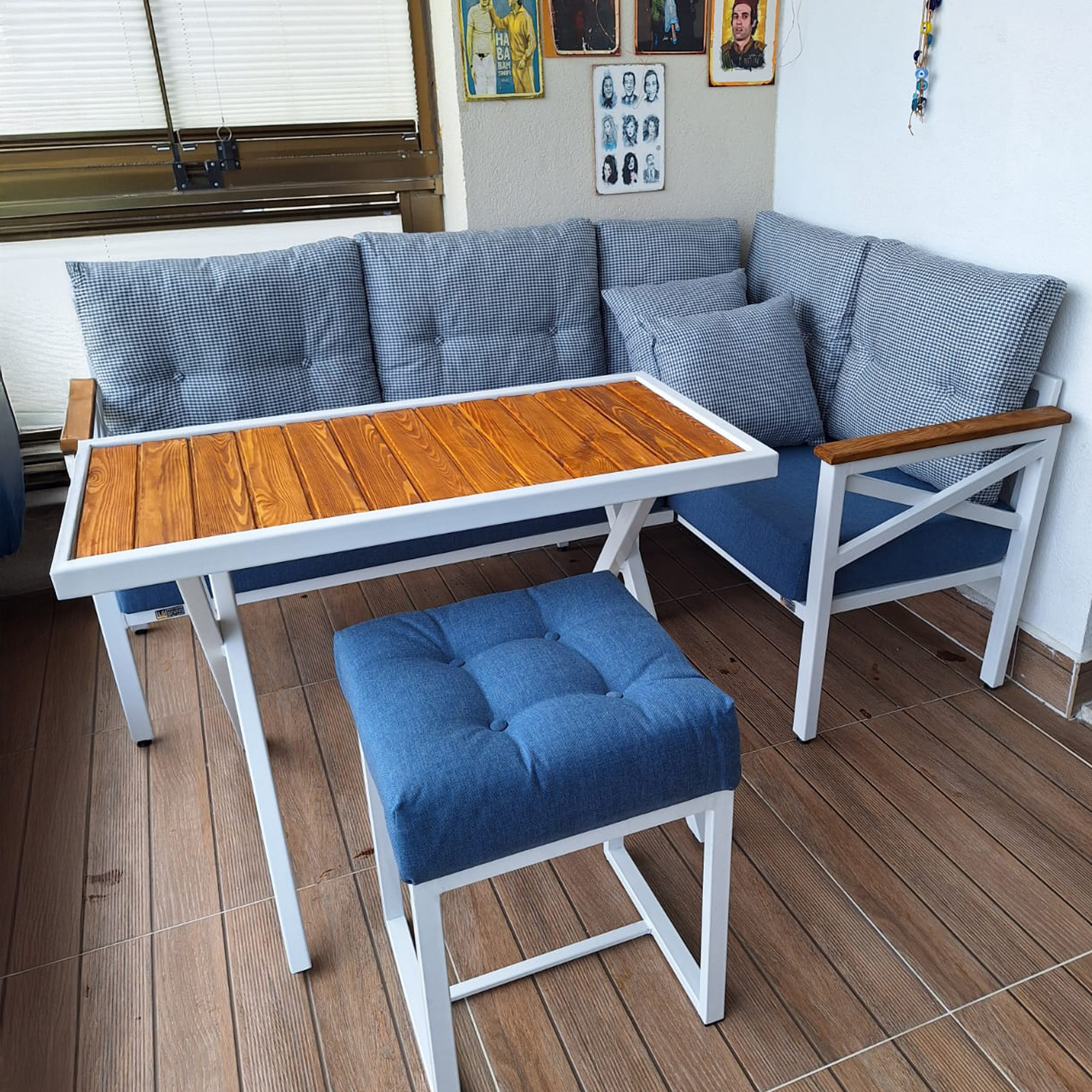 Beyaz Metal Mavi Köşe Koltuk Takımı